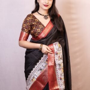 Phenomenal Black Digital Printed Dola Silk Saree With Capricious Blouse Piece