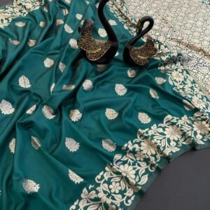 Incredible Dark Green Soft Banarasi Silk Saree With Demanding Blouse Piece