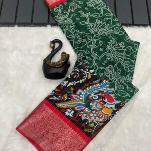 Staggering Dark Green Digital Printed Dola Silk Saree With Delectable Blouse Piece