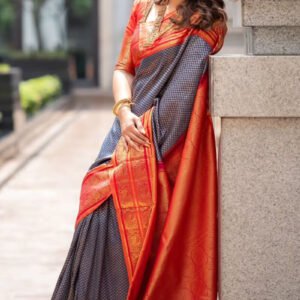 Stunning Navy Blue Soft Silk Saree With Woebegone Blouse Piece