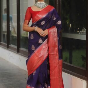 Stunning Navy Blue Soft Silk Saree With Woebegone Blouse Piece