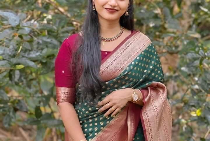 Breathtakingly beautiful banarasi art. Marvelous blend of gorgeous color pallet and ethnic motifs. wrap this luxury around your arms and feel the paradise, Be it your anytime function or occasion, we swear you won’t regret wearing this legacy.