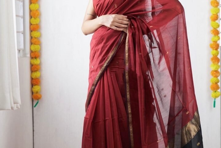 Crater Brown Maheshawari Cotton Silk Saree